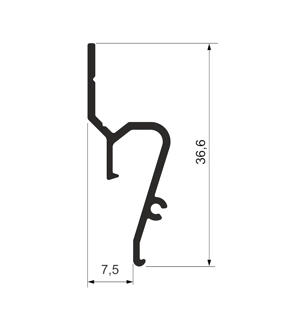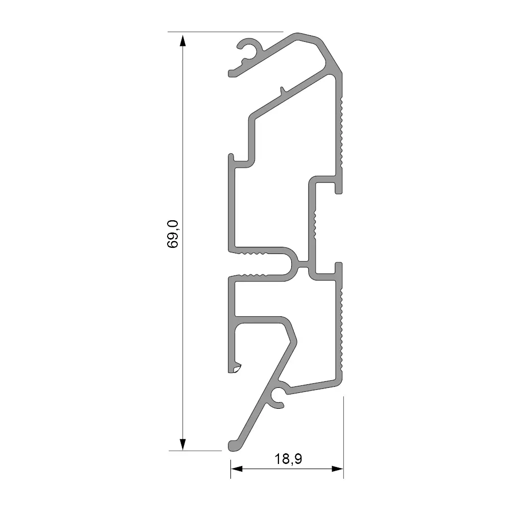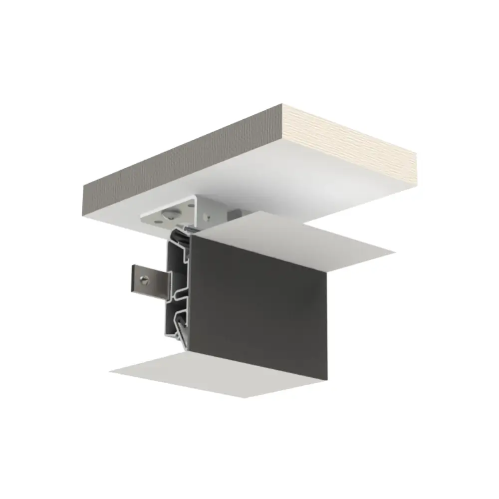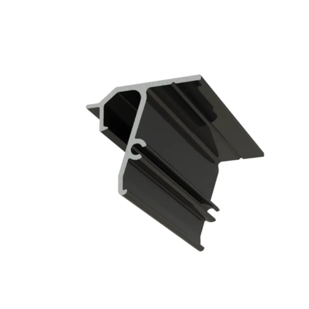 Uvedený profil je moderní typ ALU profilu určený pro napínané stropy, který umožňuje realizaci víceúrovňových a dvojitých stropních konstrukcí s maximálním důrazem na čistotu detailu. Profil je navržen tak, aby vytvářel plynulé a estetické přechody mezi jednotlivými úrovněmi bez nutnosti použití krycích PVC lišt nebo zakončovacích prvků v černé nebo bílé barvě.