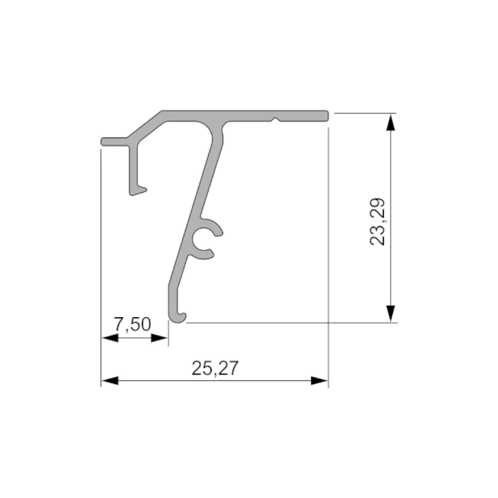 Klasický stínový stopní profil pro napínané stropy je základní typ ALU profilu určený pro vytvoření jemné stínové mezery mezi stropem a stěnou. Profil je navržen tak, aby vytvářel rovnoměrný a čistý odsazení cca 7 mm, což zajišťuje moderní a estetický vzhled bez nutnosti použití krycích lišt nebo zakončovacích prvků. Toto řešení je ideální zejména pro menší prostory, kde je kladen důraz na přesnost detailu a zachování kompaktního vzhledu stropu.